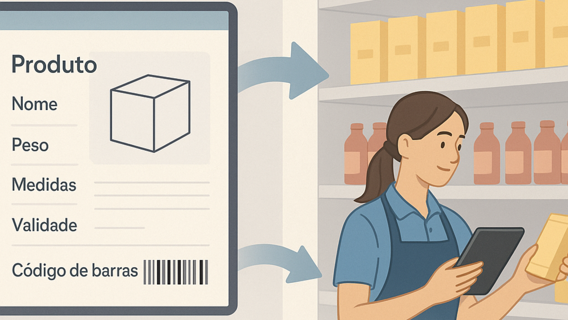 Imagine um item sem descrição adequada ou sem peso correto. No e-commerce, isso pode resultar em problemas de frete. Na loja física, pode gerar erros na precificação ou ruptura na gôndola, já que o sistema não reconhece sua necessidade de reposição.